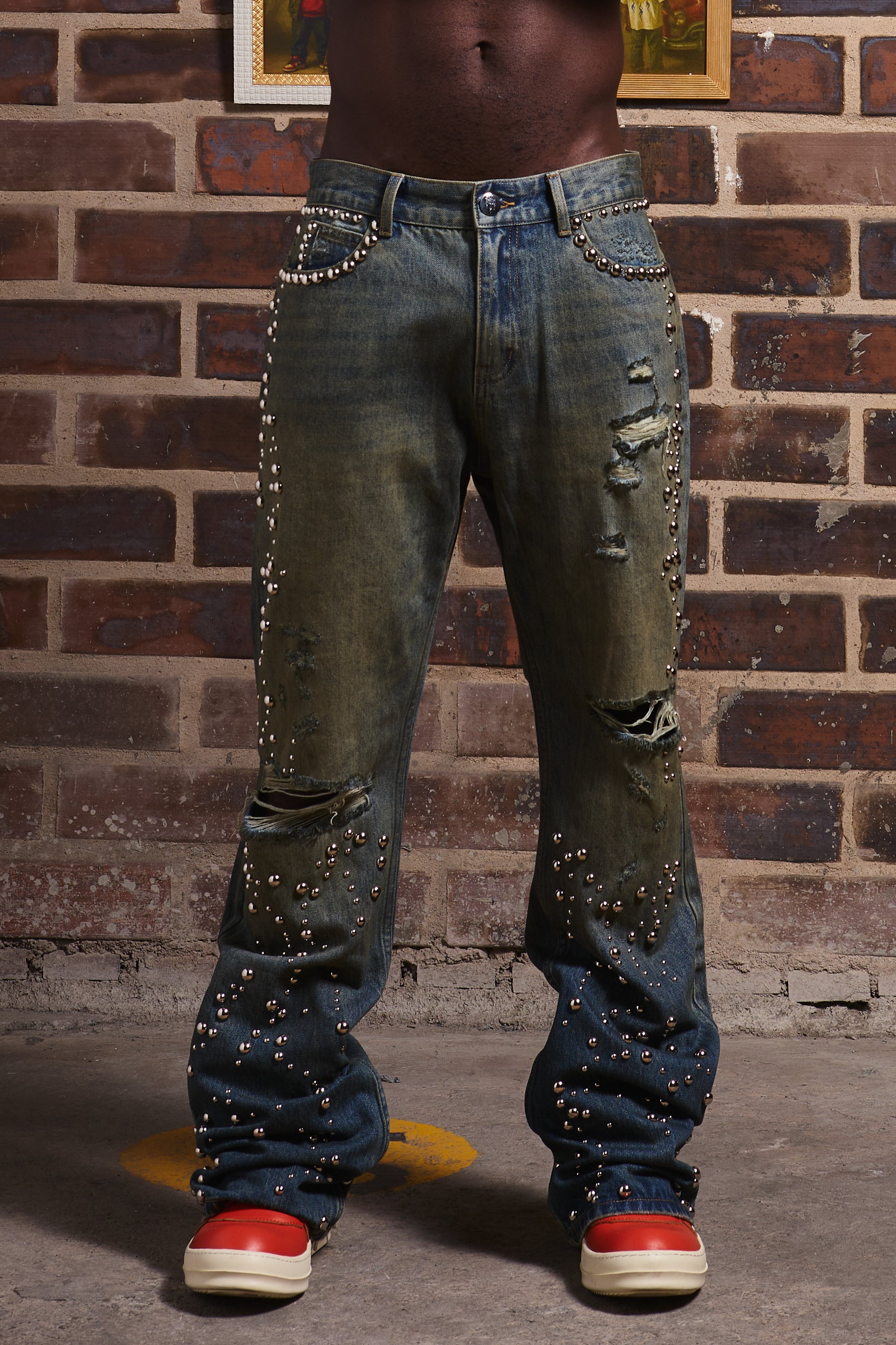99% COTTON 1% SPANDEX WITH METAL STUDS